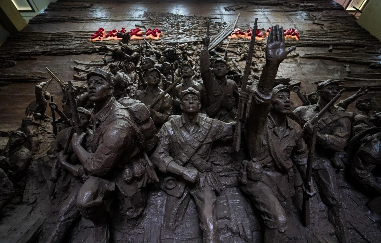 △紅軍長征湘江戰(zhàn)役紀(jì)念館內(nèi)的戰(zhàn)役雕塑