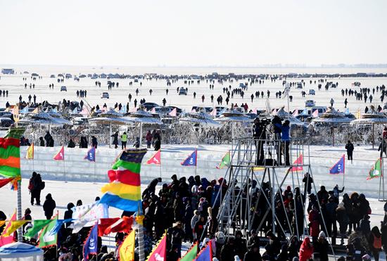2018年12月28日,吉林松原,查干湖第十七屆冰雪漁獵文化旅游節(jié)開(kāi)幕。視覺(jué)中國(guó)供圖