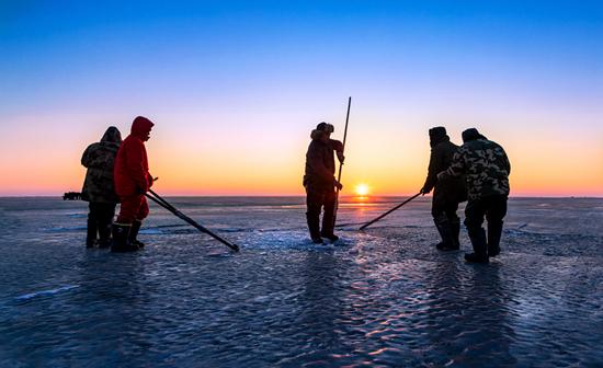 捕魚(yú)十多年,他每年只休息一個(gè)月。和其他漁把頭一樣,馬文巖坐馬車(chē)駛上凌晨4點(diǎn)的查干湖冰面,觀察在透明的冰下的魚(yú)泡,確定下網(wǎng)點(diǎn),也經(jīng)歷過(guò)誤以為冰裂的緊張時(shí)刻。他收獲最多的一次,捕獲近50萬(wàn)公斤。