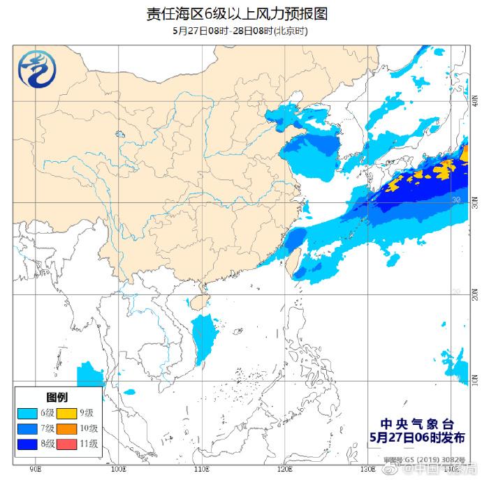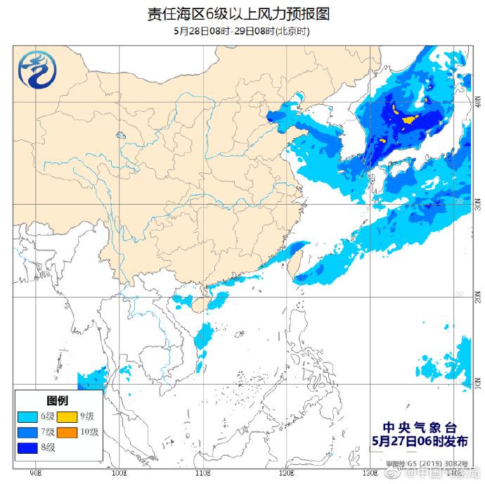 27日白天至夜間,渤海、渤海海峽、黃海北部海域、遼東半島沿岸海域、山東半島沿岸海域、渤海灣、萊州灣、浙江及福建沿岸海域、雷州半島西部沿岸海域、廣西東部沿岸海域?qū)⒂?~10級(jí)的雷暴大風(fēng),其中部分海域風(fēng)力可達(dá)11~12級(jí)。