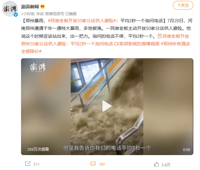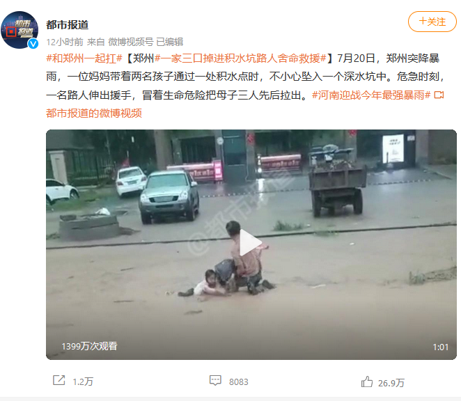 鄭州市多個國家級氣象觀測站日降雨量突破歷史極值