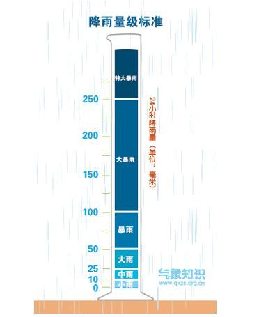 通常我們在天氣預(yù)報中看到的小雨、中雨、大雨、暴雨等量級,就是用降水量來衡量的,具體標(biāo)準(zhǔn)如下: