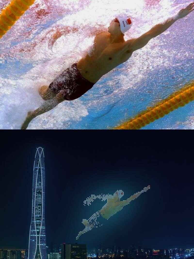 本次無人機(jī)飛行表演由“為奧運(yùn)健兒加油”“鏗鏘有力奪金歷程”“自豪自信榮耀時(shí)刻”以及“詼諧幽默奧運(yùn)彩蛋”4大主題組成。奧運(yùn)首金楊倩在領(lǐng)獎臺上俏皮比心、乒乓天團(tuán)橫掃對手實(shí)力奪金、打破亞洲100米紀(jì)錄被網(wǎng)友封為“男神”的蘇炳添……在千架無人機(jī)的光影變幻中,中國健兒在東京奧運(yùn)會上奪金的颯爽英姿在夜空中一一閃現(xiàn),也定格在每個(gè)中國人心中。