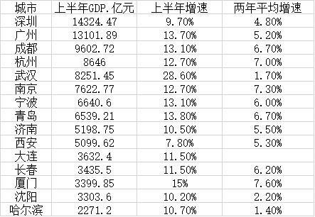 深圳和廣州之后,來自西南的成都繼續(xù)位居副省級城市第三位。數據顯示,成都上半年實現GDP9602.72億元,同比增長13.1%,兩年平均增長6.7%。其中,上半年成都市規(guī)模以上工業(yè)增加值同比增長14.0%,兩年平均增長8.0%,兩年平均增速較一季度提高0.6個百分點。