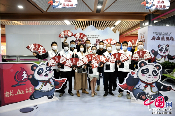 云南昆明血液中心領(lǐng)導(dǎo)和昆明市無(wú)償獻(xiàn)血志愿者協(xié)會(huì)隊(duì)長(zhǎng)一起,為“熱血熊貓俠”原創(chuàng)吉祥物揭幕,結(jié)合可愛(ài)熊貓和獻(xiàn)血元素的“熱血萌主”一經(jīng)亮相,就引起大家的陣陣歡呼。