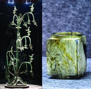 左為1號青銅神樹;右為神樹紋玉琮