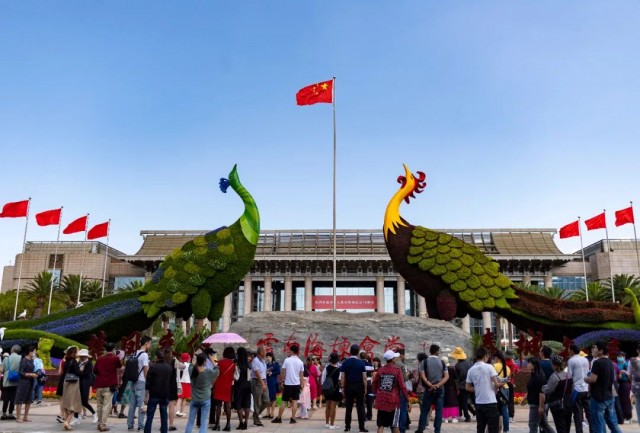 昆明市海埂會(huì)堂前拍攝的立體花壇。