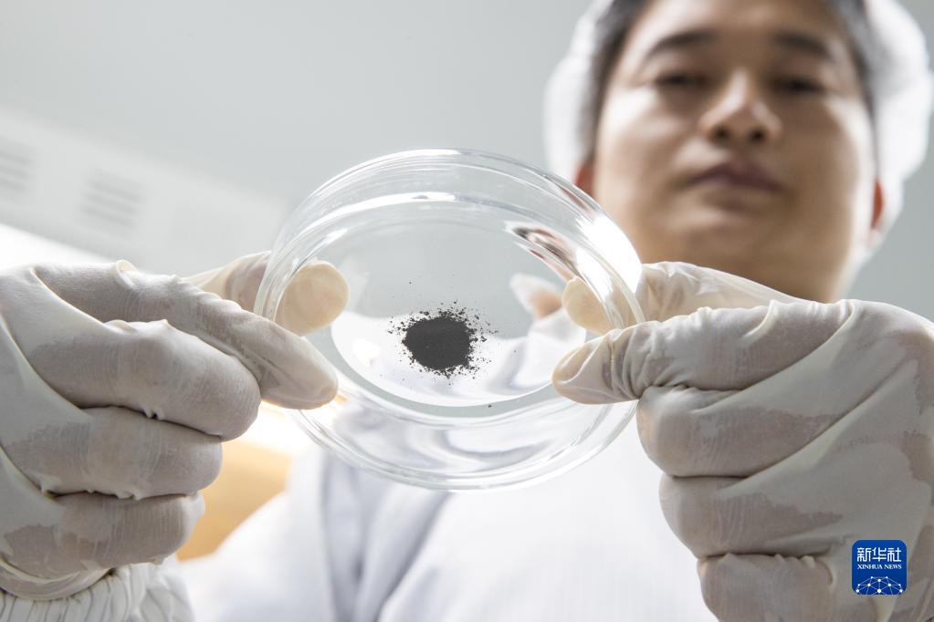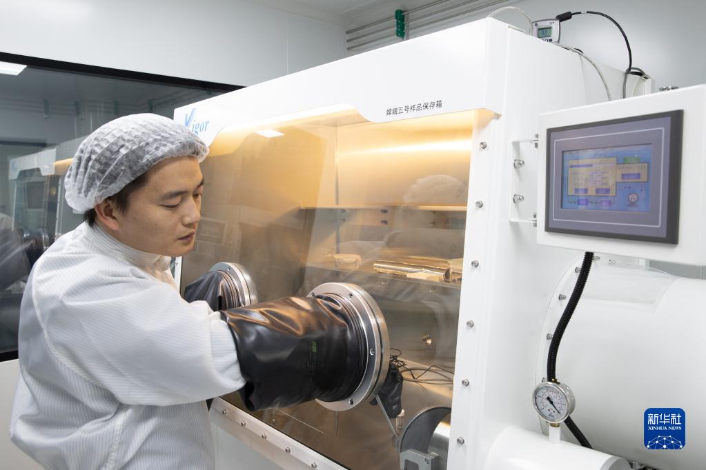 10月15日,在中科院地質(zhì)與地球物理研究所月球樣品潔凈室,田恒次副研究員在處理月球樣品。新華社記者 金立旺 攝