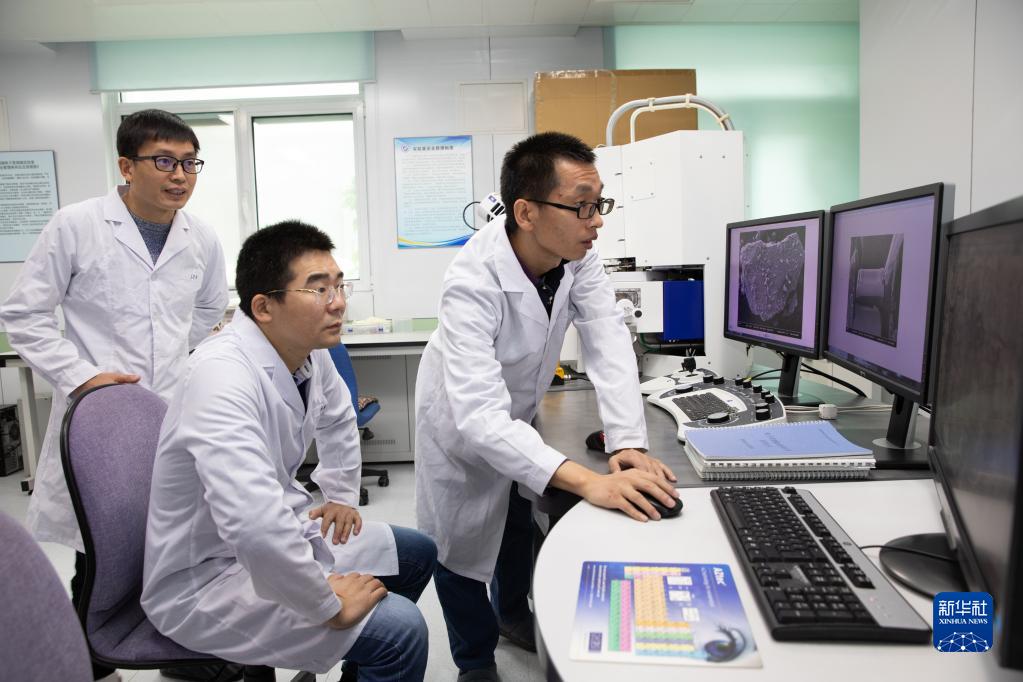 10月18日,在中科院地質(zhì)與地球物理研究所電子顯微鏡實(shí)驗(yàn)室,團(tuán)隊(duì)科研人員在討論實(shí)驗(yàn)進(jìn)展。新華社記者 金立旺 攝