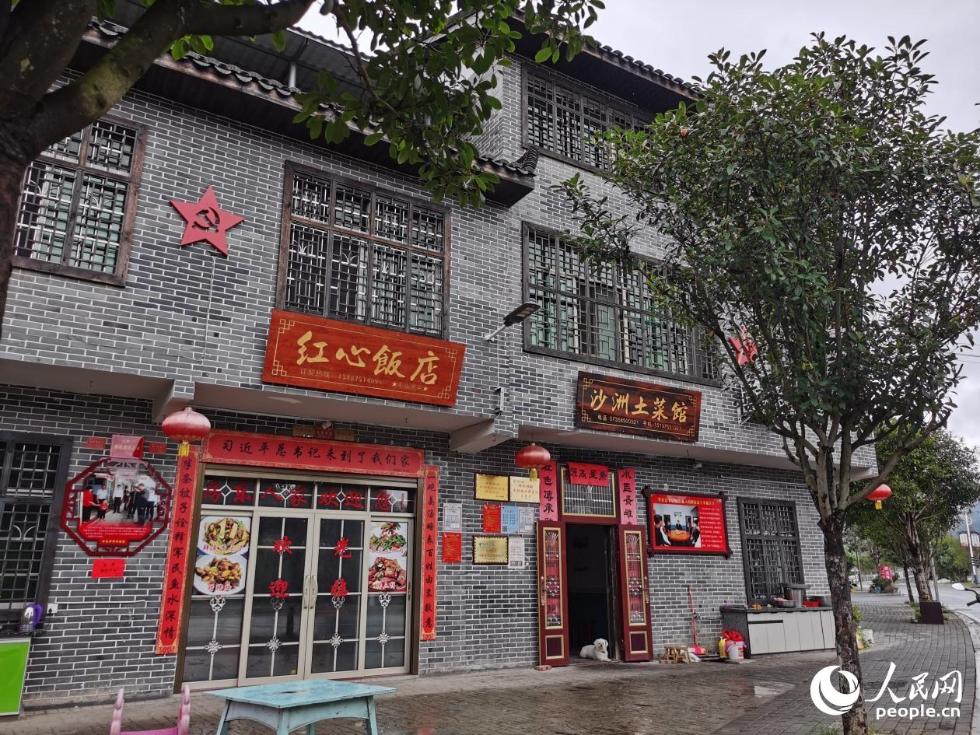 2017年,朱小紅通過參加當?shù)攸h委、政府組織的廚師技能培訓,有了一技之長。同年10月1日,沙洲第一家土菜館誕生在朱小紅的手上。看“半條被子”,品“房東”手藝。來到沙洲瑤族村的游客,不少都選擇嘗嘗朱小紅的手藝。