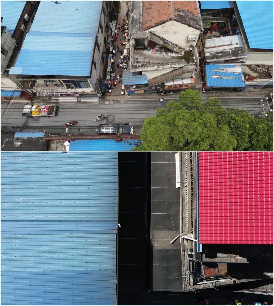 這是一張拼版圖片。上圖是改造前的“抗癌廚房”,沒有頂棚;下圖是改造后的“抗癌廚房”,已經(jīng)支起透明的頂棚。新華社記者胡晨歡制作