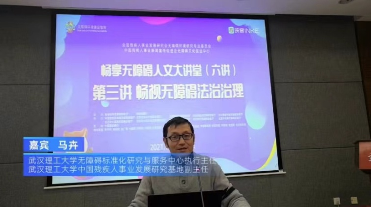 武漢理工大學(xué)無(wú)障礙標(biāo)準(zhǔn)化研究與服務(wù)中心執(zhí)行主任、武漢理工大學(xué)中國(guó)殘疾人事業(yè)發(fā)展研究基地副主任馬卉,分享的題目是“中國(guó)無(wú)障礙法治環(huán)境保障論壇成果綜述”;