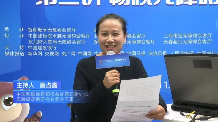 第三講的主題是“暢視無(wú)障礙法治治理”。由中國(guó)殘聯(lián)維權(quán)部權(quán)益處兼職副處長(zhǎng)、無(wú)障礙環(huán)境研究專(zhuān)委會(huì)干事唐占鑫主持。她首先介紹了12月3日“國(guó)際殘疾人日”的由來(lái)及意義,她說(shuō),“暢視無(wú)障礙法治治理”正是對(duì)尊嚴(yán)權(quán)益保障的最好詮釋。