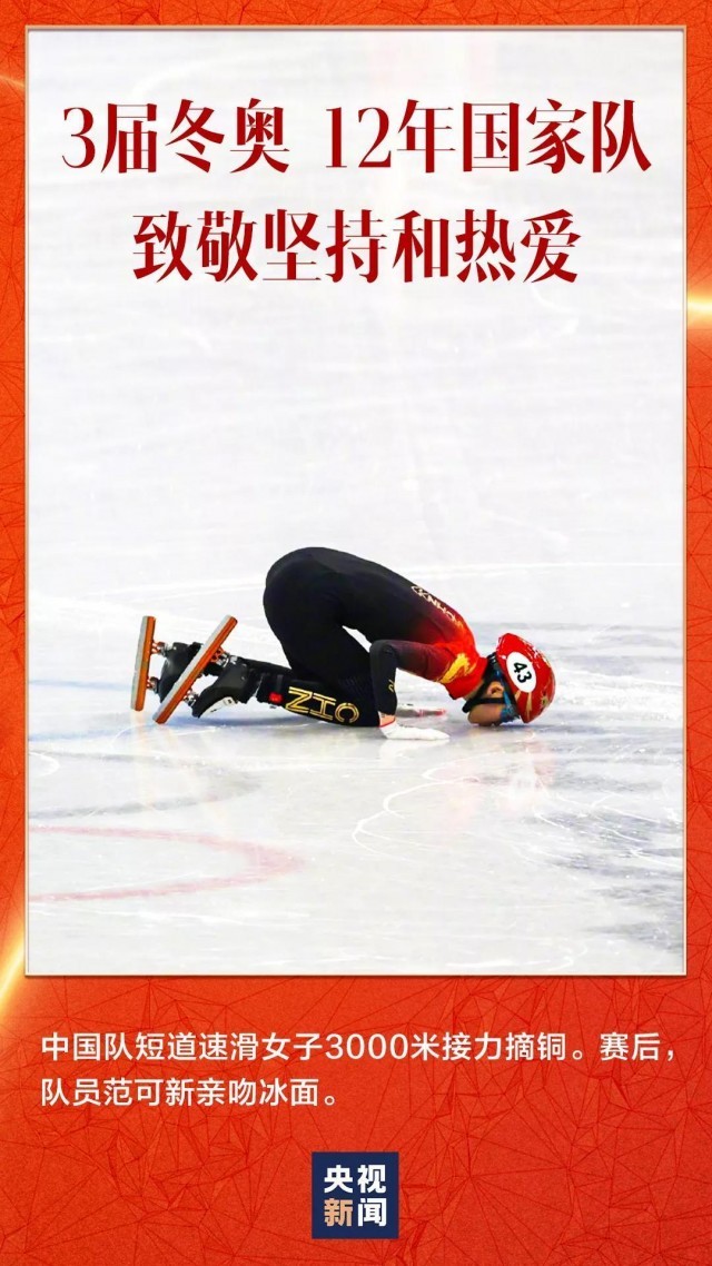 賽后,范可新動情地跪地親吻冰面,展現(xiàn)了一名老將的堅持和柔情。范可新說,親吻冰面是想感謝強大的祖國,能舉辦冬奧會,能讓更多我們國家的運動員在祖國的冰面上向世界展現(xiàn)自己!