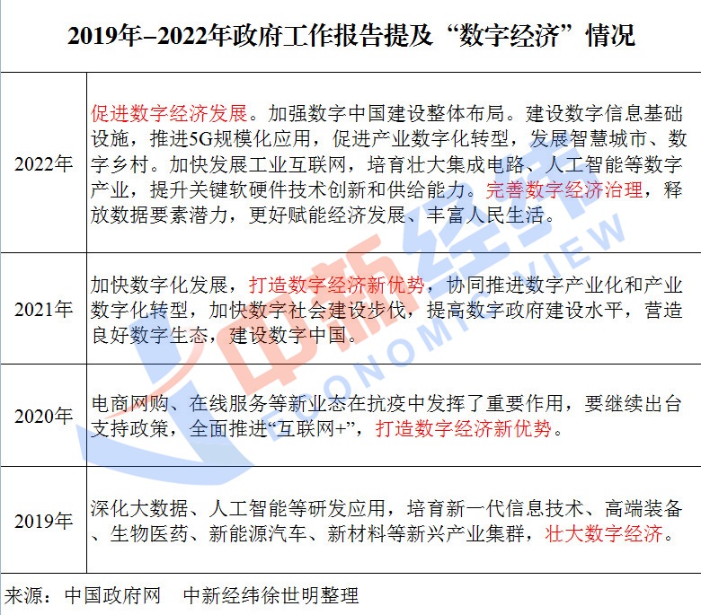 早在2019年,政府工作報(bào)告就提出“壯大數(shù)字經(jīng)濟(jì)”,緊接著2020年和2021年,政府工作報(bào)告中更是直接提出“打造數(shù)字經(jīng)濟(jì)新優(yōu)勢”,數(shù)字經(jīng)濟(jì)也在抗疫和產(chǎn)業(yè)轉(zhuǎn)型中發(fā)揮了重要作用,