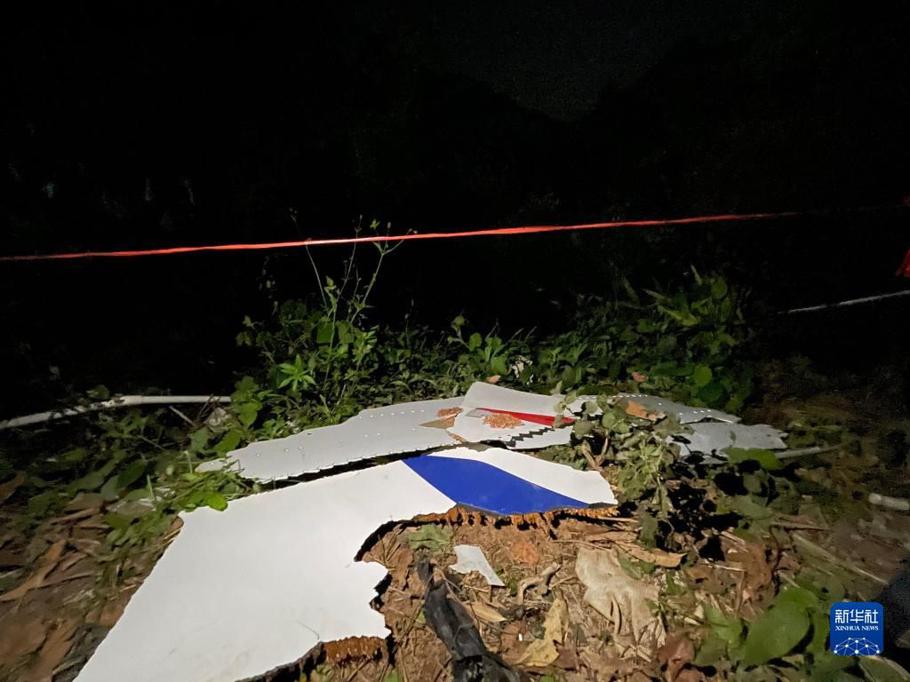 這是廣西藤縣墜機(jī)事故現(xiàn)場(chǎng)散落的飛機(jī)殘骸。(3月22日攝,手機(jī)照片) 新華社記者 周華 攝