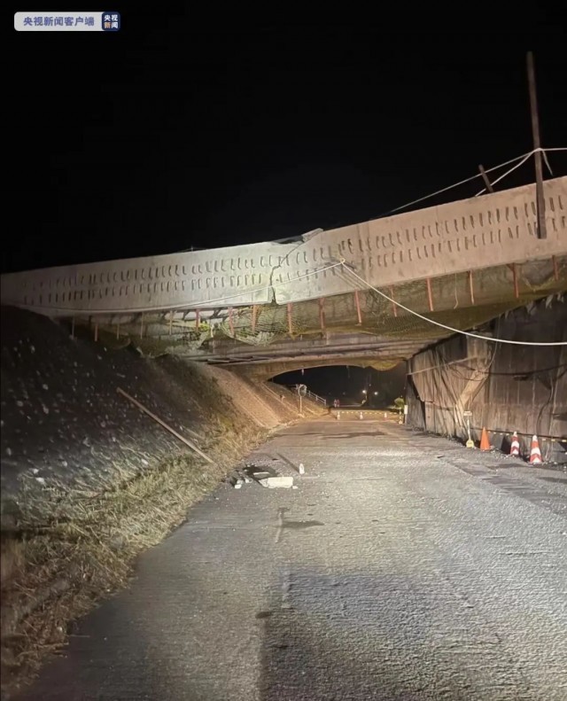 △23日凌晨,受地震影響,臺灣花蓮縣一座正在興建中的橋梁坍塌,所幸當(dāng)時并沒有人員在橋梁上施工。