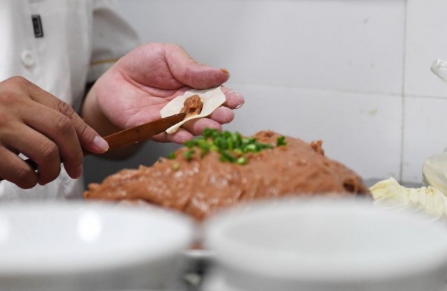 “以前手打三到四斤肉餡,要50多分鐘,現(xiàn)在用機(jī)器打餡,十分鐘就能完成,既提高了效率,也保證了肉餡的新鮮度和韌勁。”王盛濱說。