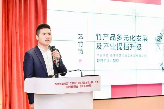 2021年11月,共青團(tuán)咸寧市委推薦賀慈參加了“創(chuàng)青春”湖北青年創(chuàng)新創(chuàng)業(yè)大賽。今年3月,“藝竹情”被湖北省總工會(huì)授予“湖北五一勞動(dòng)獎(jiǎng)狀”,以肯定這家企業(yè)對(duì)咸寧竹產(chǎn)業(yè)作出的突出貢獻(xiàn)。