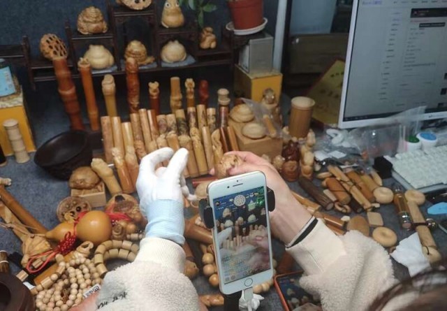 “藝竹情”公司員工直播銷售竹工藝品。受訪者供圖