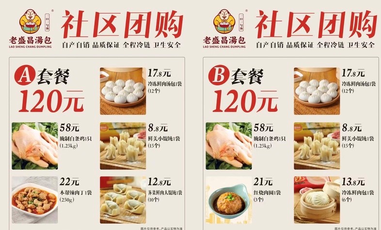 4月1日起,隨著居民對預包裝食品需求的增加,老盛昌推出120元一套的社區(qū)團購套餐,60份以上成團。居民可通過老盛昌微信公眾號、企業(yè)微信訂閱號下單。公司每天派專人專車送至各封控、管控小區(qū),再由“團長”組織志愿者無接觸配送。截至目前,老盛昌一共履約8萬份社區(qū)團購套餐。