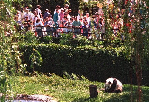 大熊貓“興興”抵美已26年,每天仍有成千上萬的人來看望它。新華社記者劉宇攝(1998年6月3日發(fā))