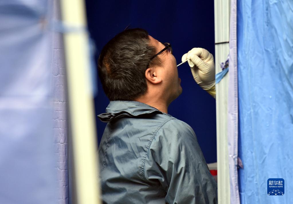 4月19日,在香港旺角流動(dòng)采樣站,市民做核酸檢測(cè)。新華社記者 盧炳輝 攝