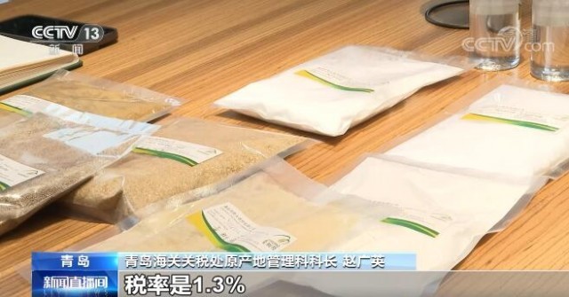 青島海關(guān)關(guān)稅處原產(chǎn)地管理科科長 趙廣英:比如這款出口到韓國的賴氨酸鹽酸鹽,根據(jù)RCEP協(xié)定,目前的稅率是6.1%,而根據(jù)我國和韓國簽署的自貿(mào)協(xié)定,稅率是1.3%,這種情況我們就不會(huì)用RCEP的規(guī)則。這款黃糊精出口到韓國,RCEP協(xié)定稅率目前是0%,而中韓自貿(mào)協(xié)定的稅率為8%,這款產(chǎn)品我們選用RCEP就比較合適。