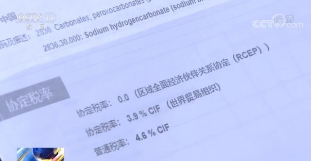 在山東青島這家化工企業(yè),外貿(mào)業(yè)務(wù)員劉琨正在與日本客戶對(duì)接今年的新訂單。這張客戶發(fā)來的稅率表上顯示,RCEP生效后,日本客戶采購自己企業(yè)生產(chǎn)的碳酸氫鈉等產(chǎn)品關(guān)稅已從去年的3.9%直接降為零。