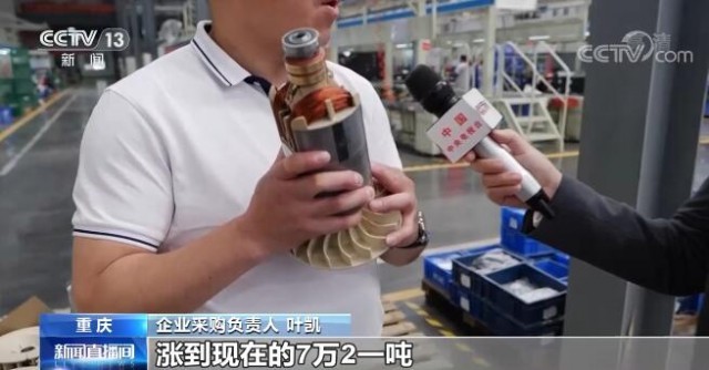 企業(yè)采購負(fù)責(zé)人 葉凱:發(fā)電機(jī)由很多銅絲組成,目前的銅價(jià)從原來的4.5萬元、4.6萬元一噸漲到現(xiàn)在的7.2萬元一噸。