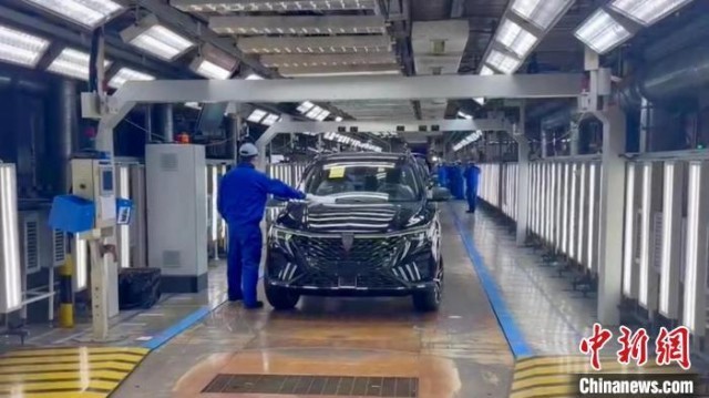 上汽集團(tuán)臨港乘用車工廠完成復(fù)工復(fù)產(chǎn)壓力測(cè)試下的首臺(tái)車下線。 上汽集團(tuán)供圖