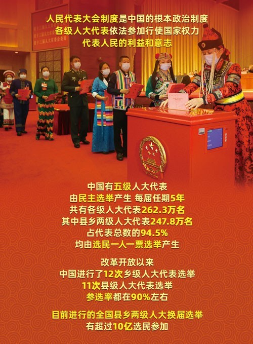 2022年3月,十三屆全國(guó)人大五次會(huì)議通過了關(guān)于修改地方各級(jí)人民代表大會(huì)和地方各級(jí)人民政府組織法的決定,修改后的法律進(jìn)一步貫徹發(fā)展全過程人民民主的重大理念,明確地方人大和地方政府“堅(jiān)持以人民為中心,堅(jiān)持和發(fā)展全過程人民民主”,地方各級(jí)人大代表“充分發(fā)揮在發(fā)展全過程人民民主中的作用”。