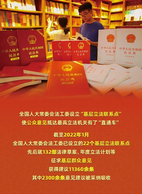 讓“高大上”的立法“接地氣”,像昆山這樣的基層立法聯(lián)系點(diǎn),是全國(guó)22個(gè)基層立法聯(lián)系點(diǎn)積極開展工作的一個(gè)縮影。截至2022年1月,全國(guó)人大常委會(huì)法工委設(shè)立的22個(gè)基層立法聯(lián)系點(diǎn)先后就132部法律草案、年度立法計(jì)劃等征求基層群眾意見,獲得建議11360余條,其中2300余條意見建議被不同程度采納吸收,生動(dòng)踐行、發(fā)展著新時(shí)代全過程人民民主。