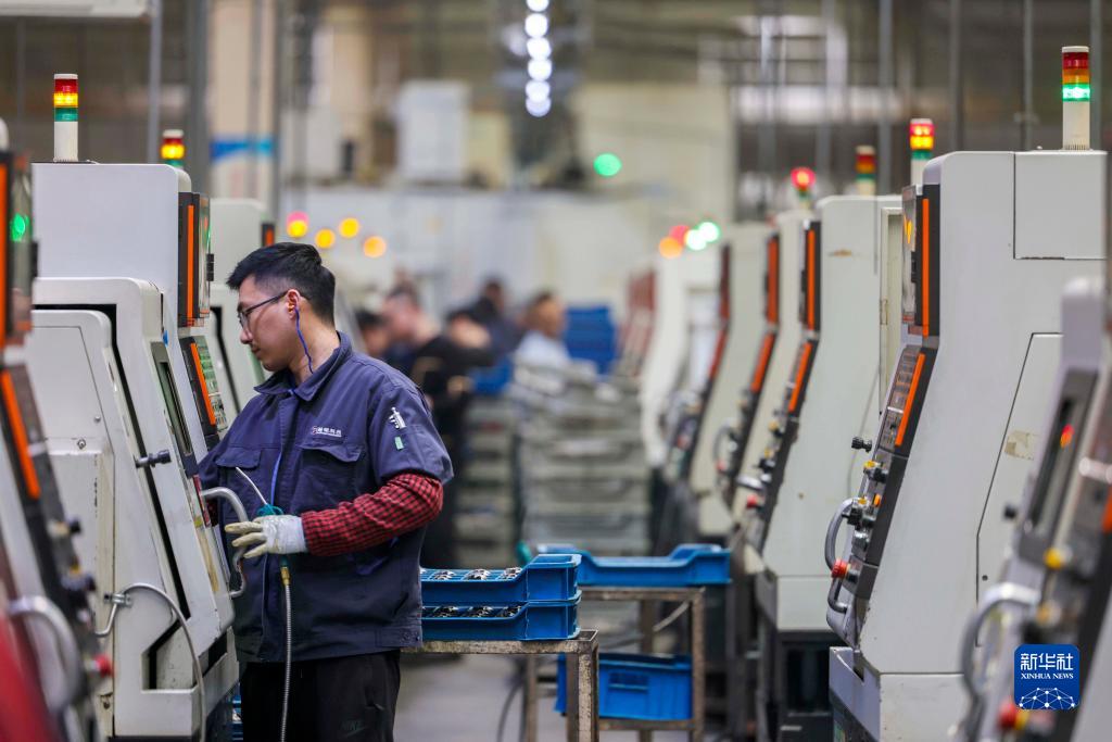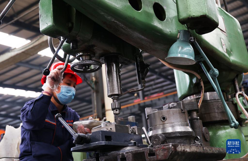 4月27日,工人在位于江蘇省泰州市姜堰區(qū)的江蘇太平洋精鍛科技股份有限公司生產(chǎn)車間忙碌。