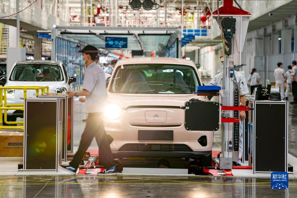 4月26日,在浙江省金華市新能源汽車小鎮(zhèn)零跑汽車有限公司車間里,新能源汽車有序下線。