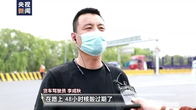 貨車駕駛員 李成秋:我是從遼寧過來的,在路上48小時核酸過期了,正好一下高速,也趕上這邊有做核酸的,挺方便我們貨車司機的。