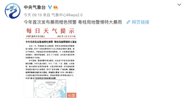 5月12日8時(shí)51分,中山市氣象臺(tái)發(fā)布全市暴雨紅色預(yù)警信號(hào)。預(yù)計(jì)5月12日中山市陰天,有暴雨到大暴雨,局部特大暴雨。