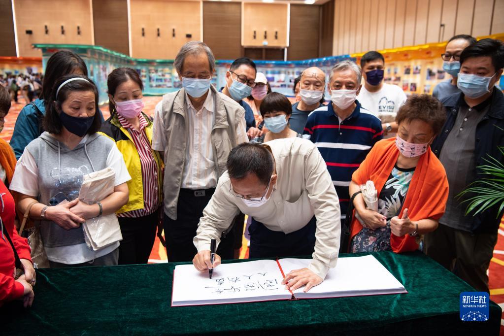 5月15日,市民在澳門特區(qū)第五屆“全民國家安全教育展”留言簿上留言。新華社記者 張金加 攝