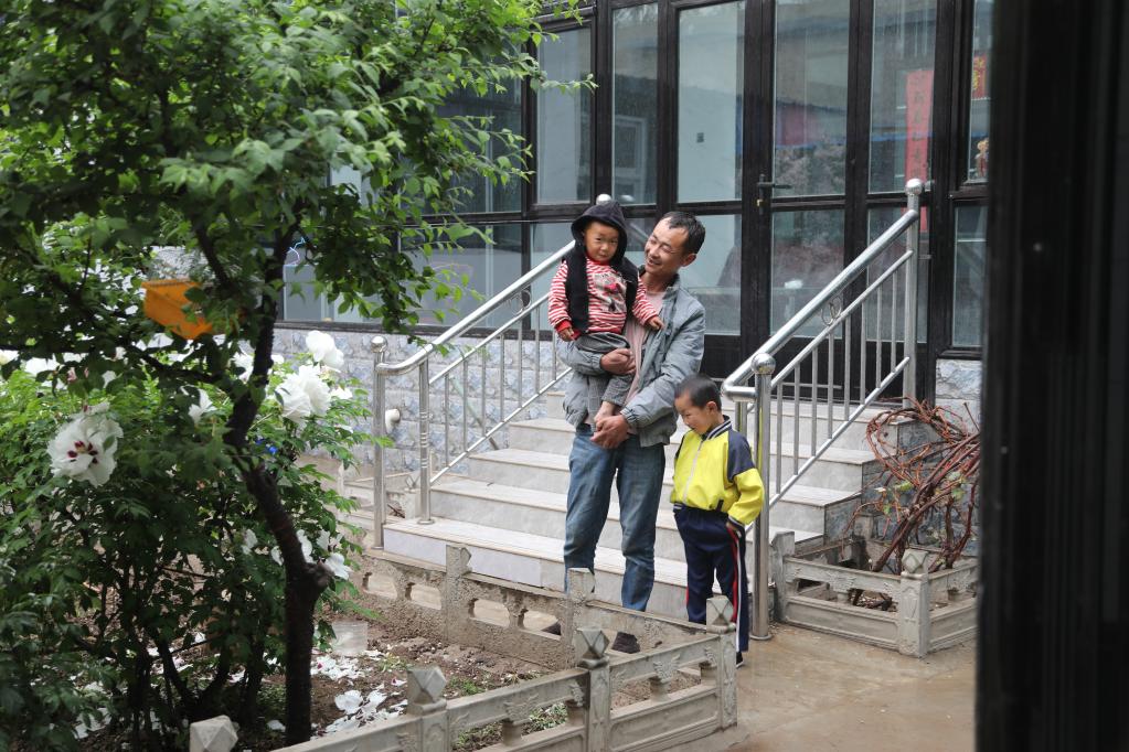 李珊珊帶著兩個(gè)孩子在新家小院玩耍。 新華社記者馬莎攝