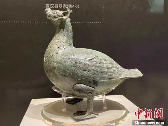 “花開并蒂——巴蜀青銅文明特展”中展出的鳥形尊。 楊予頔 攝