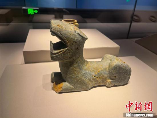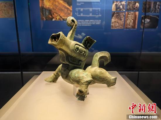 5月18日,正值第46個(gè)國際博物館日,18日,“花開并蒂——巴蜀青銅文明特展”在四川省宜賓市博物院正式亮相。展覽上,三星堆遺址祭祀坑出土的爬龍銅器蓋、銅神獸首次面向公眾展出。圖為三星堆遺址三號祭祀坑出土的銅神獸。 何浠 攝