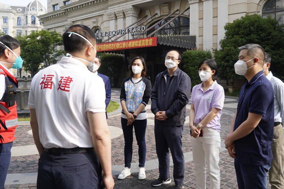 “謝謝你們,你們辛苦了,一路平安!”區(qū)領(lǐng)導(dǎo)與醫(yī)療隊員們親切交流,詳細(xì)了解大家在援滬期間的工作和生活情況,認(rèn)真傾聽隊員們回顧在滬期間抗疫的難忘經(jīng)歷。區(qū)領(lǐng)導(dǎo)祝愿大家一路平安、身體健康、工作順利,歡迎大家等疫情結(jié)束后來上海旅游。
