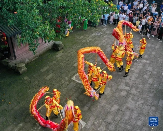 6月3日在重慶市永川區(qū)板橋老街拍攝的民俗表演現(xiàn)場。新華社記者 王全超 攝