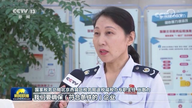 國家稅務(wù)總局北京西城區(qū)稅務(wù)局退稅減稅辦專職主任 張敬力:我們要確保(符合條件的)企業(yè)都能享受到政策紅利,一戶不落,力爭退稅資金及時(shí)到賬。