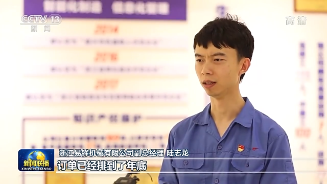 浙江易鋒機(jī)械有限公司副總經(jīng)理 陸志龍:訂單已經(jīng)排到了年底,我們公司將維持年初制定的業(yè)績(jī)?cè)鲩L(zhǎng)20%目標(biāo)不變。