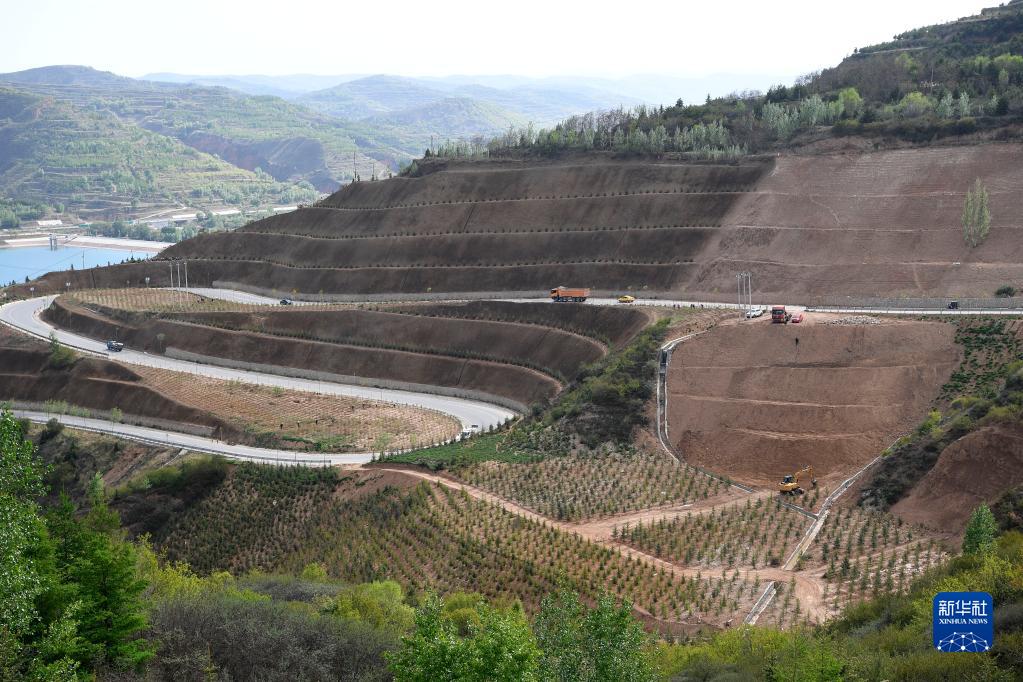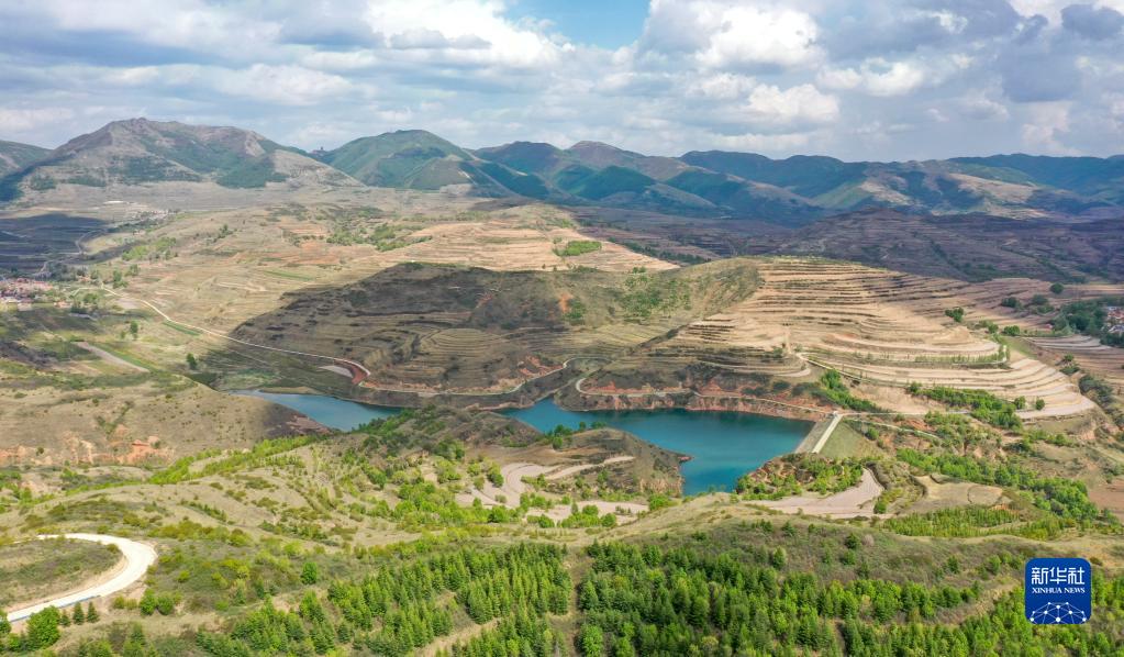 寧夏固原隆德縣北象山歷史遺留廢棄礦山修復(fù)工程(5月11日攝,無人機照片)。新華社記者 王鵬 攝