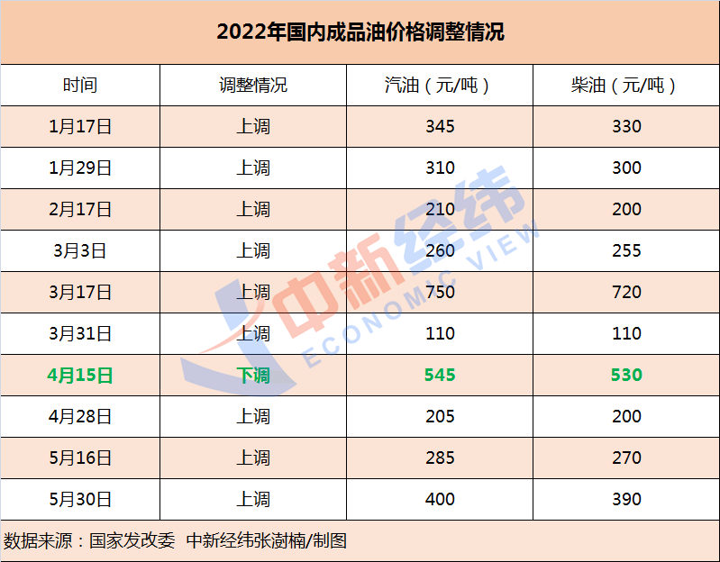 中新經緯梳理,今年以來,國內成品油價格已進行了十輪調整,汽油價格累計上調2330元/噸,柴油價格累計上調2245元/噸,呈現(xiàn)“九漲一跌”格局。