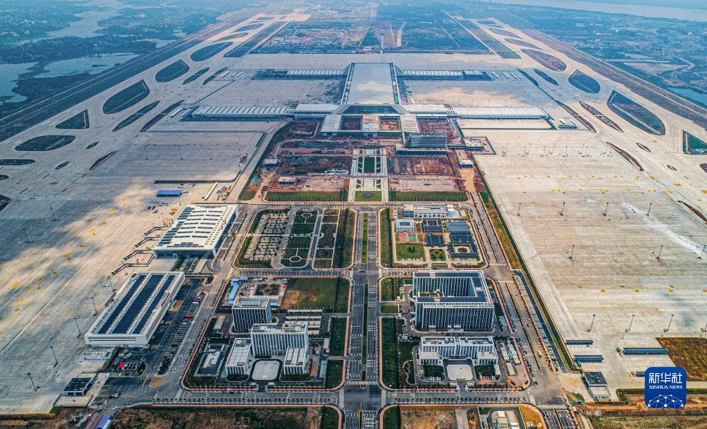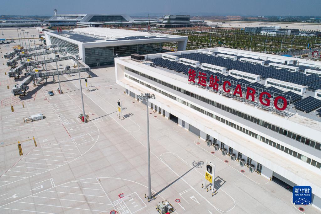 新華全媒+丨我國首個專業(yè)貨運機場即將投用---6月14日拍攝的鄂州花湖機場(無人機照片)。