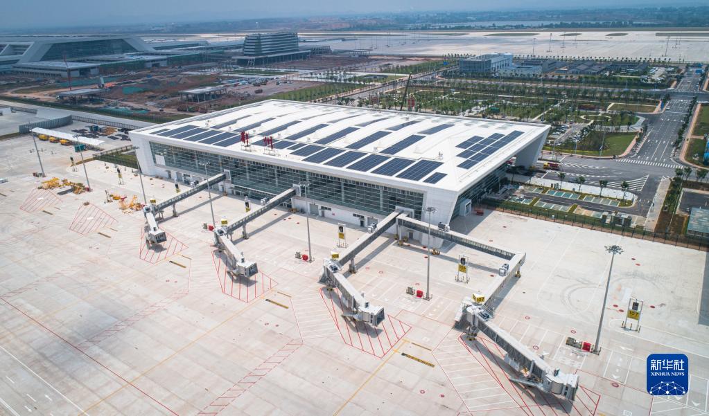 6月14日拍攝的鄂州花湖機場一角(無人機照片)。