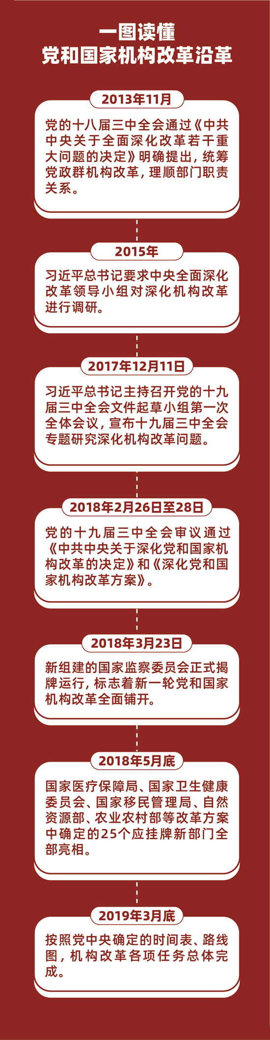 據(jù)統(tǒng)計,1981年以來,黨中央部門進行了4次改革,國務(wù)院機構(gòu)進行了7次改革,逐步建立起具有我國特點的黨和國家機構(gòu)職能體系。學(xué)界有這樣的共識:2018年深化黨和國家機構(gòu)改革是新中國成立以來規(guī)模最大、程度最深的一次機構(gòu)改革,通過機構(gòu)改革,適應(yīng)新時代要求的黨和國家機構(gòu)職能體系主體框架初步建立,為完善和發(fā)展中國特色社會主義制度,推進國家治理體系和治理能力現(xiàn)代化提供了有力組織保障。